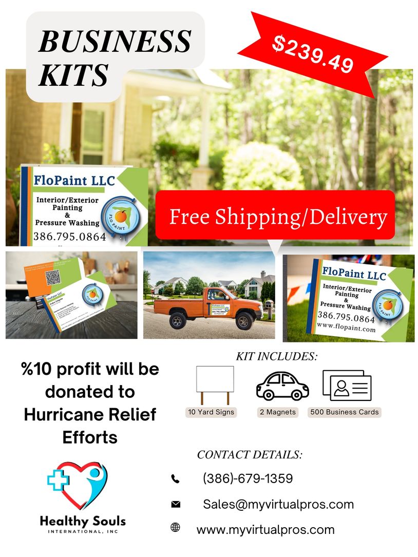 Plus, when you purchase a Small Business Kit, 10% of the profits will be donated to a nonprofit organization of your choice, all dedicated to providing relief for communities affected by hurricanes.
